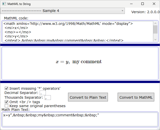 :Dim converted as String = MathMLToString.convertToString(MathMLcodeToConvert)